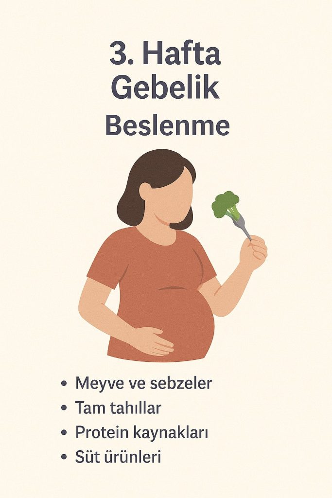Kısacası, 3. hafta gebelikte beslenme; hücre gelişimi, rahim sağlığı ve hormonal dengeyi destekleyici bir düzende olmalıdır. Folik asit, su, temiz protein ve doğal gıdalar bu dönemin temel taşlarıdır.