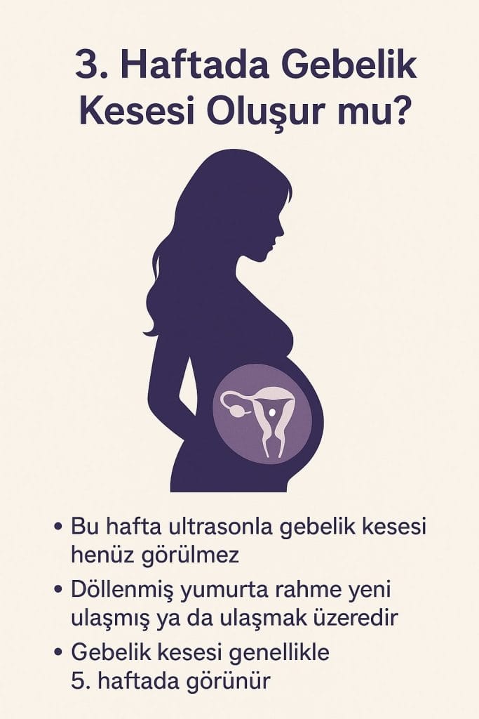 3. haftada gebelik kesesi henüz oluşmamıştır. Zigot, rahme tutunma aşamasındadır ve ultrasonla görülebilir bir yapıya dönüşmesi için birkaç gün daha gerekir.