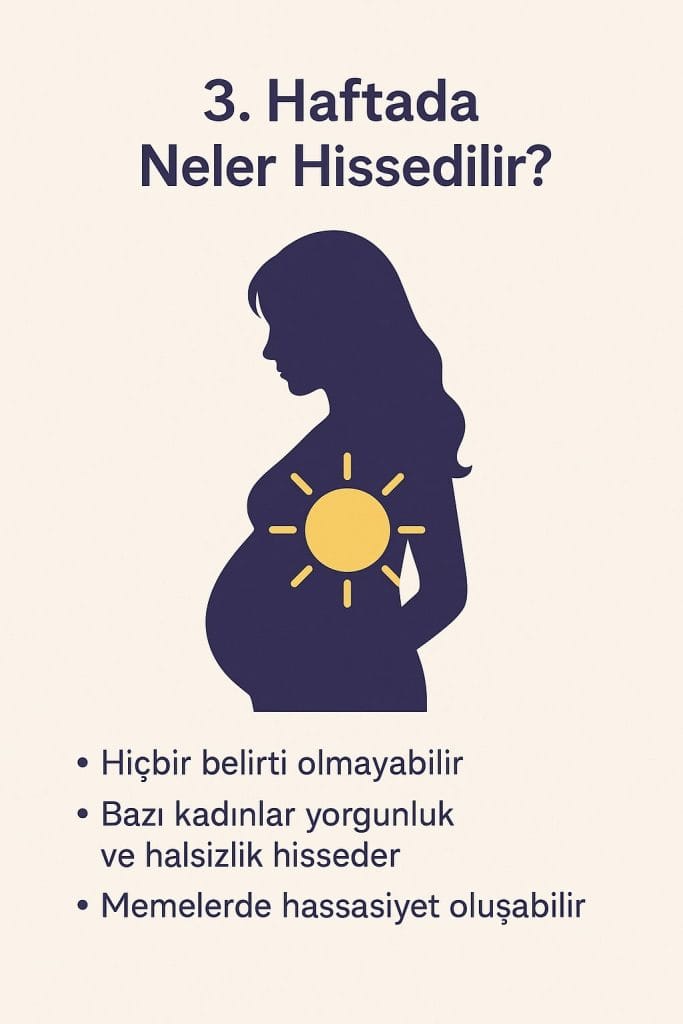 Gebeliğin 3. haftasında belirtiler genellikle çok hafif ya da fark edilmeyecek kadar belirsiz olabilir. Çünkü bu hafta, döllenmiş yumurtanın rahme doğru ilerleyip yerleşmeye çalıştığı (implantasyon) erken bir dönemdir. Ancak bazı kadınlar vücutlarındaki küçük değişimleri fark edebilir.