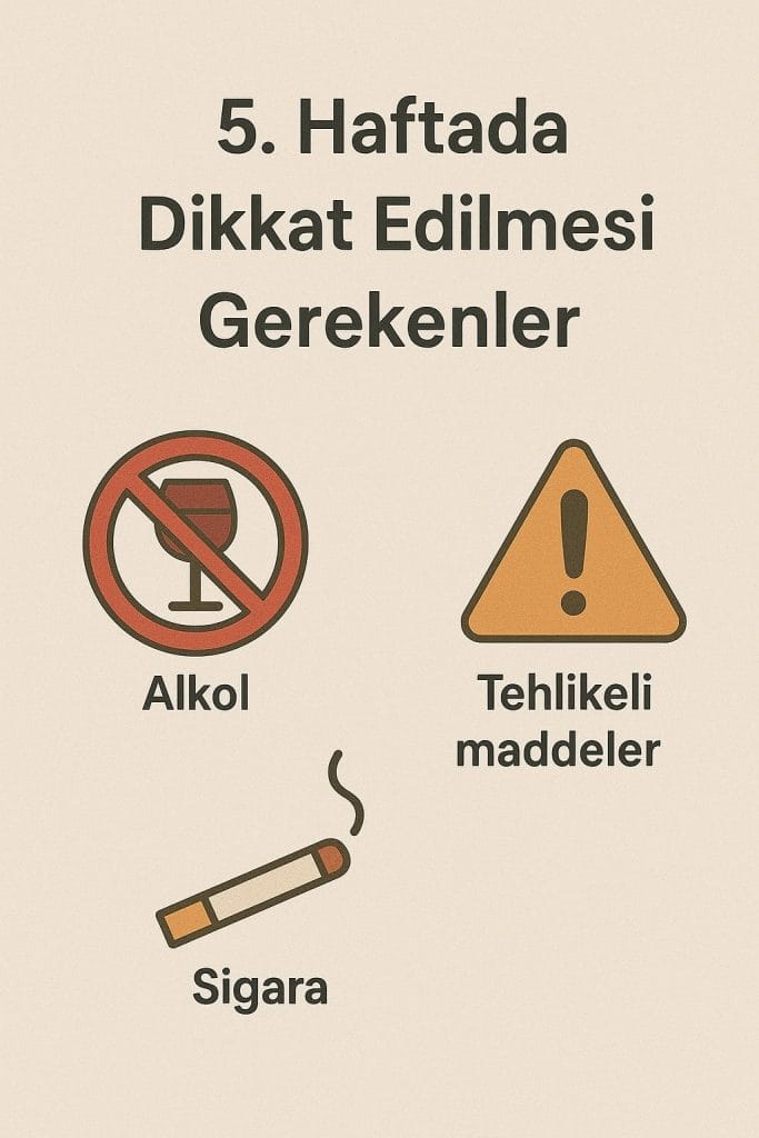 5 haftalık gebelikte dikkat edilmesi gerekenler, hem annenin sağlığını hem de bebeğin gelişimini korumaya yöneliktir. Bu dönemde bilinçli adımlar atmak, gebeliğin ilerleyen haftalarını daha güvenli ve sağlıklı geçirmenizi sağlar. “Henüz çok erken” diyerek tedbiri elden bırakmak yerine, bu dönemi gebelik sürecinin temeli olarak görmek en doğrusudur.